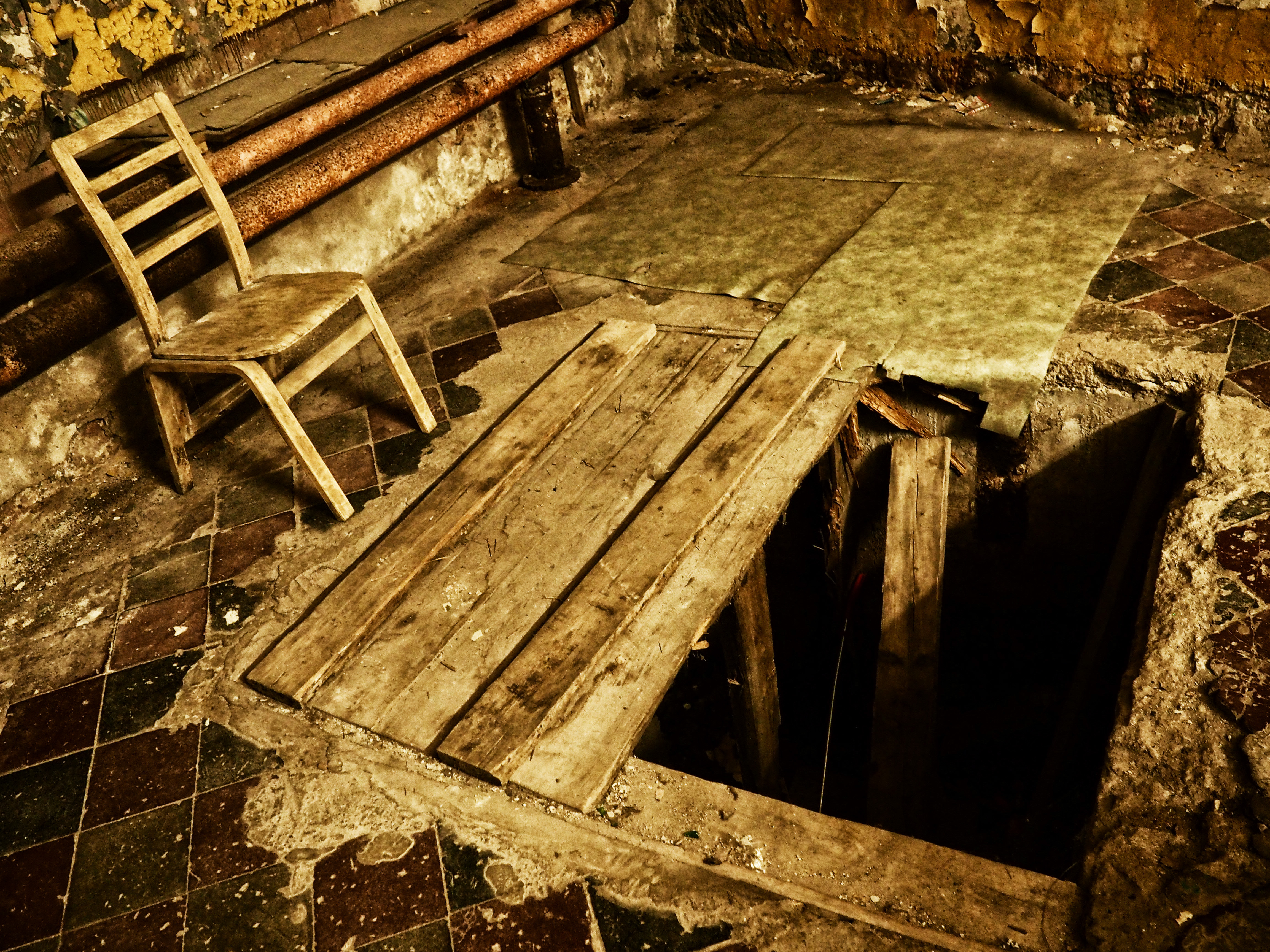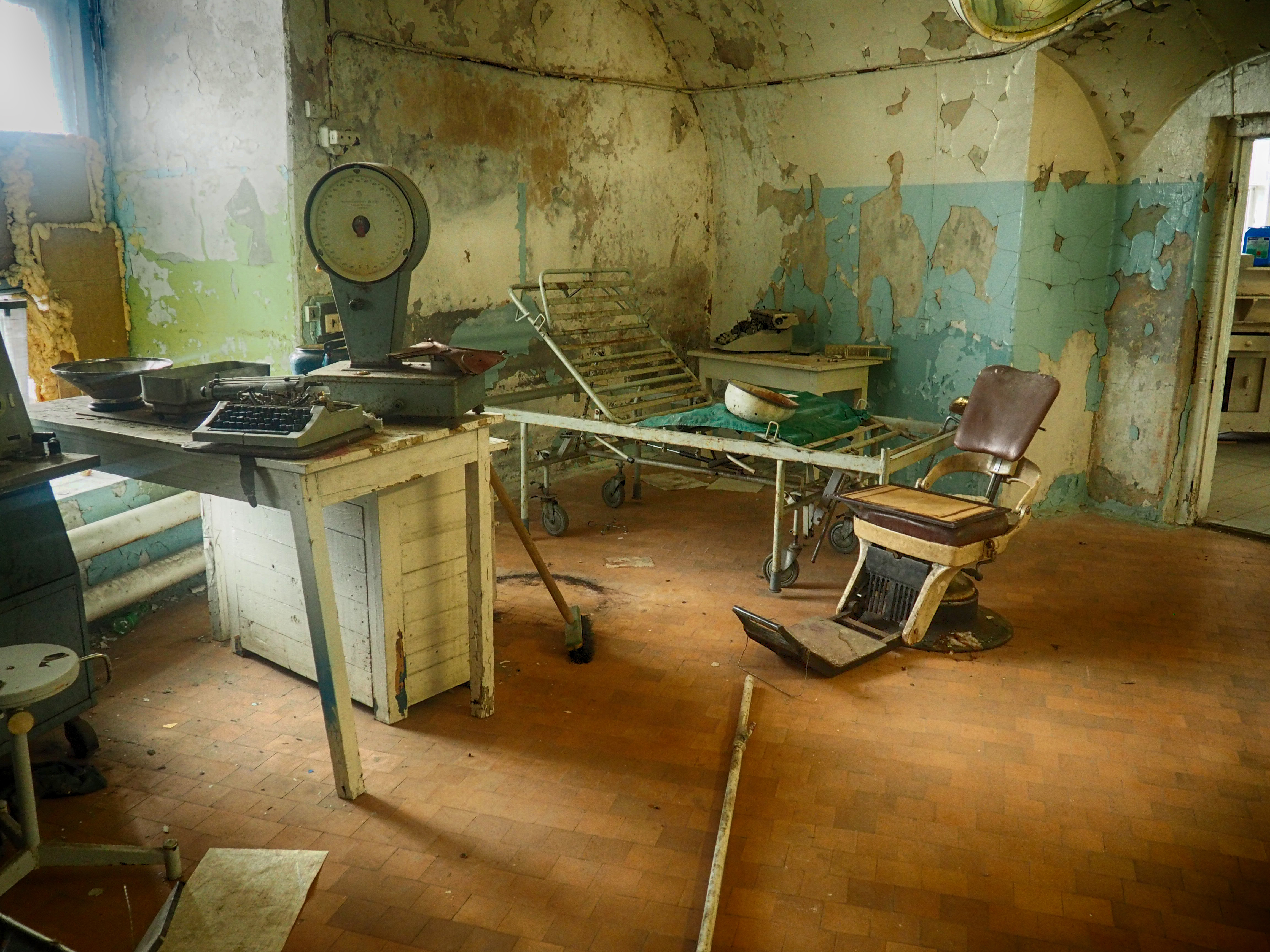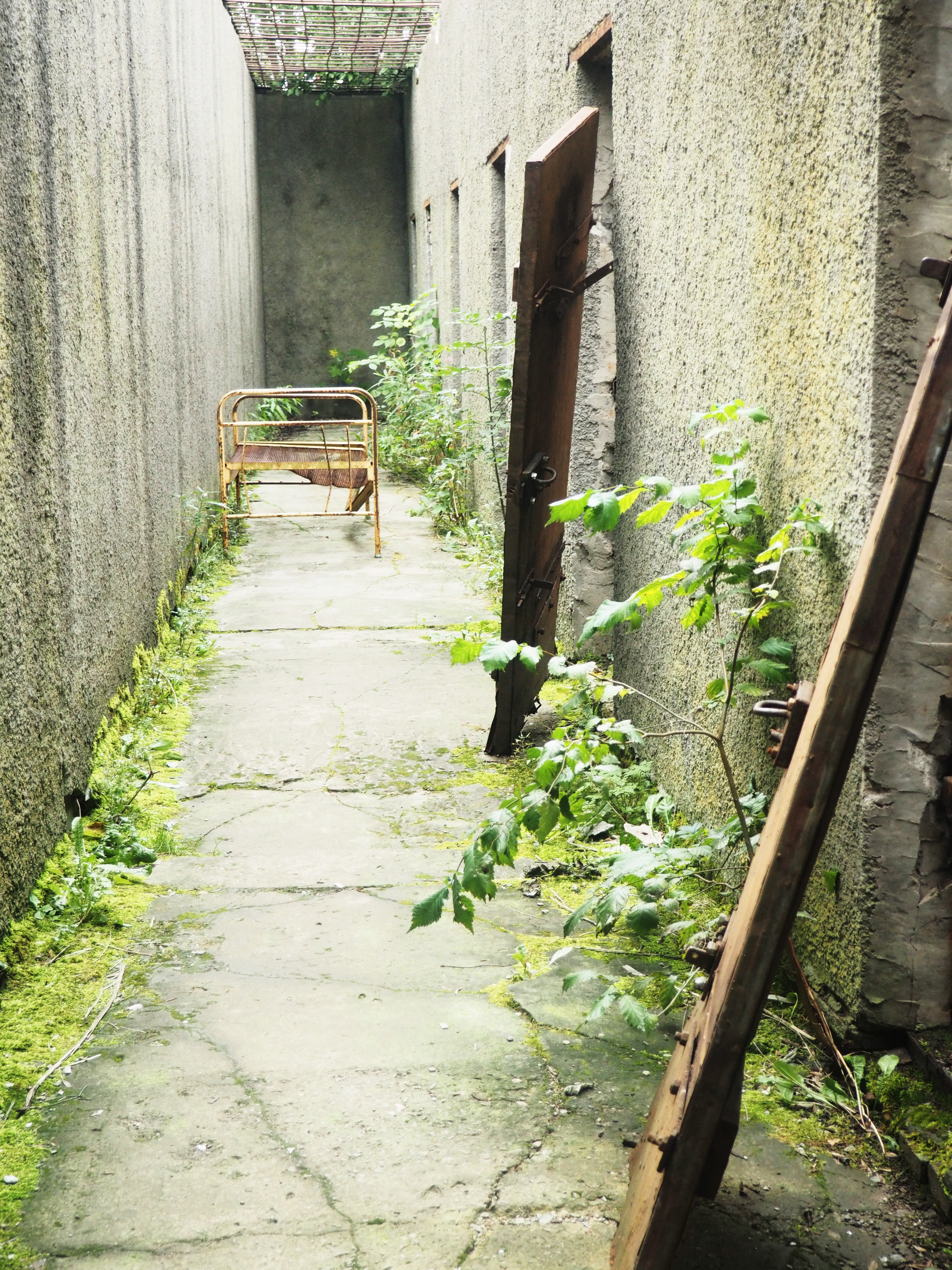 Most of the cells were completely dark with only slivers of natural light shining through. Several corridors were sealed off with locks and chains for whatever reason, but the majority of the prison was completely open for exploration. Accessible areas even included the guard’s watchtower which overlooked the facility and exercise yards (if you could call them that as there was barely room to swing a Soviet sickle in the cages). Warped wooden staircases creaked and bowed underfoot on the ascent, threatening to yield at any moment. At this point I was beginning to wonder if allowing Joe-public the freedom to roam around was wise or not at this stage with all the rotten floorboards, crumbling ceilings, dark coves and barbed wire. The most sinister room was not even the hanging chamber (pictured with chair) but the medical unit and operating theatre. It could serve very adequately as the set for a horror movie without any additional props or dramatic staging. Original medical equipment, tubing, bed pans, typewriters, scales etc. are all still in place and astoundingly haven’t been looted.