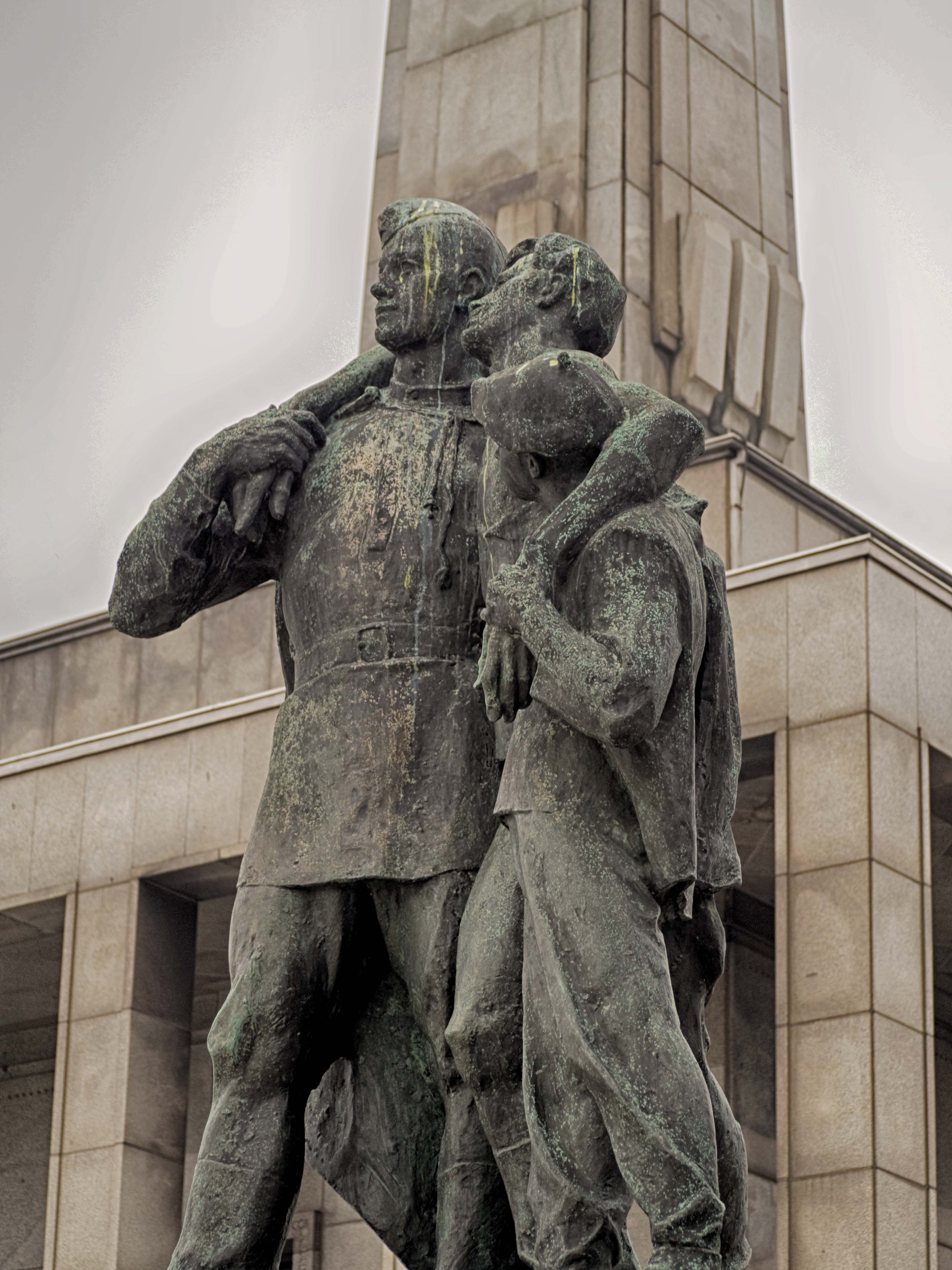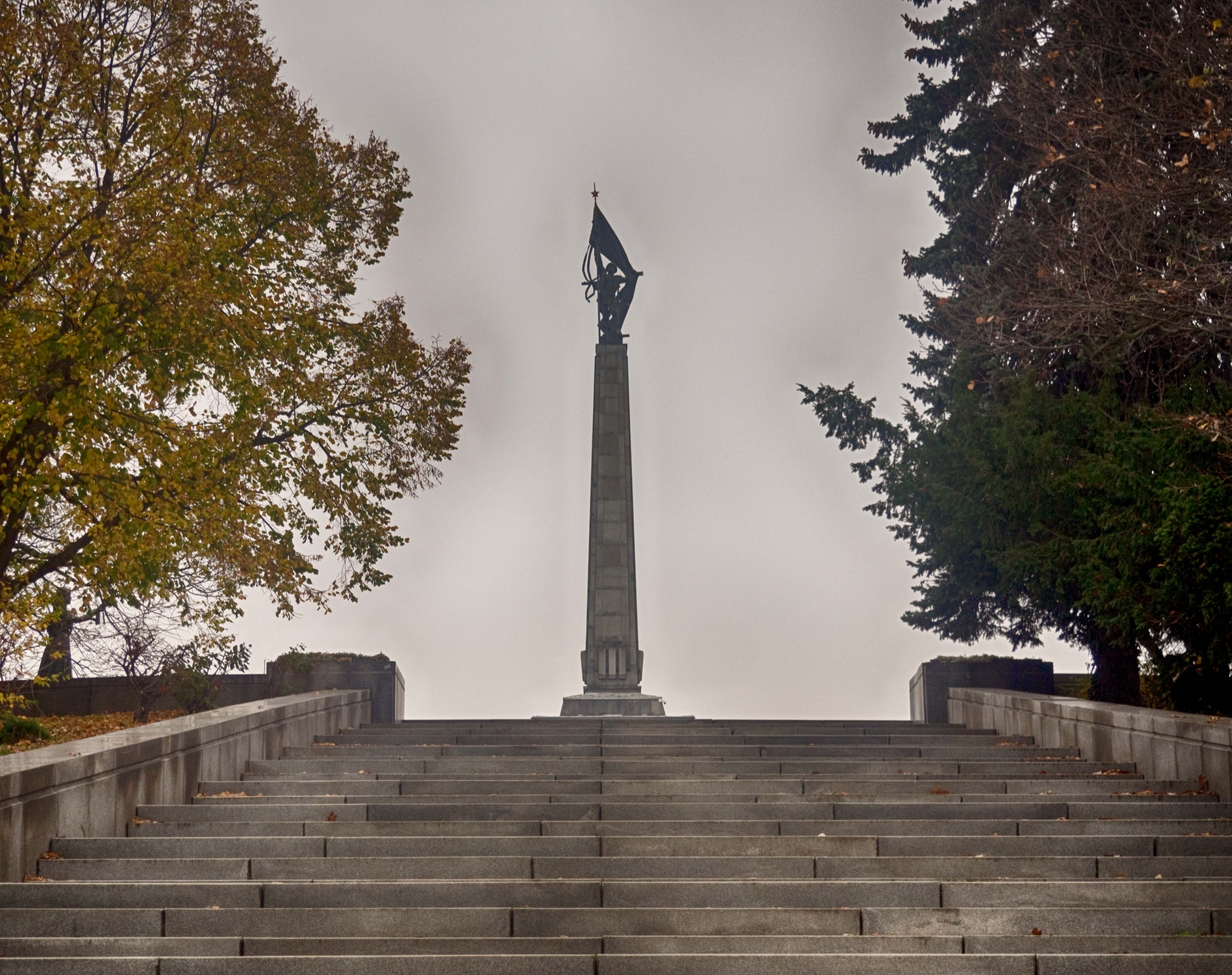 The Battle of Budapest in late 1944 saw Romanian and Soviet forces oust the Germans from south. The Red Army gradually swept across the largely devastated Slovakia in the name of liberation after all was said and done, as WWII drew to a close. The Slavín Monument and cemetery in Bratislava was unveiled in 1960 in tribute to the Soviet troops who perished in the events of 1945 whilst liberating Slovakia from Nazi occupation. It was designed in the bold and prominent Stalinist architectural style, with the statues personified in typical socialist realism.