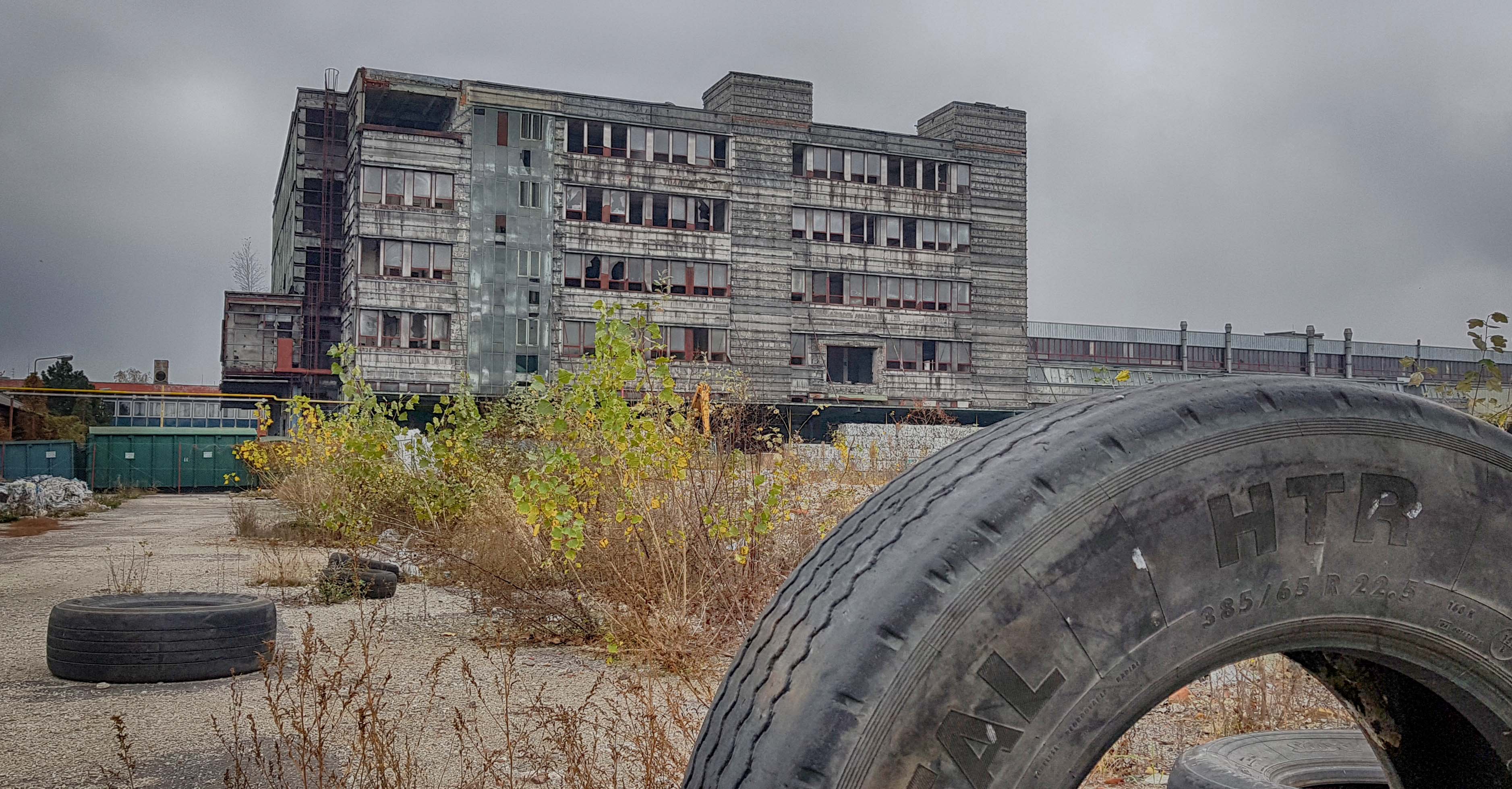 We visited one former tyre factory near Kopčianska Street (of the company Matador) that isn’t entirely abandoned but is being partially utilised for the plastics recycling business. A serious fire broke out at the factory in 2013 when a nearby transformer station caught fire and exploded. Beside the factory stands a looming industrial chimney, that most likely has not been functioning for some time. Such derelict industrial areas in Bratislava are slowly disappearing to make way for futuristic developments. For example, Sky Park is under construction now in 2019, and fortunately aims to preserve a decommissioned heating plant as a national cultural site. Ambitious plans for the Eurovea project included a 168m skyscraper; still under dispute at the time of writing as it allegedly exceeds the permissible height aligned with the city’s masterplan.