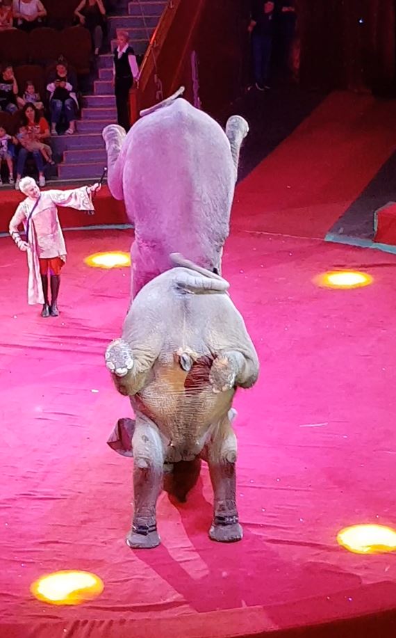 Then came the animals; dogs, ponies, a porcupine, a crocodile, an alpaca, small monkeys, big cats including a lion and more. The star of the show was silver-haired stud called Andrey Dementiev-Kornilov, King of the Elephants.