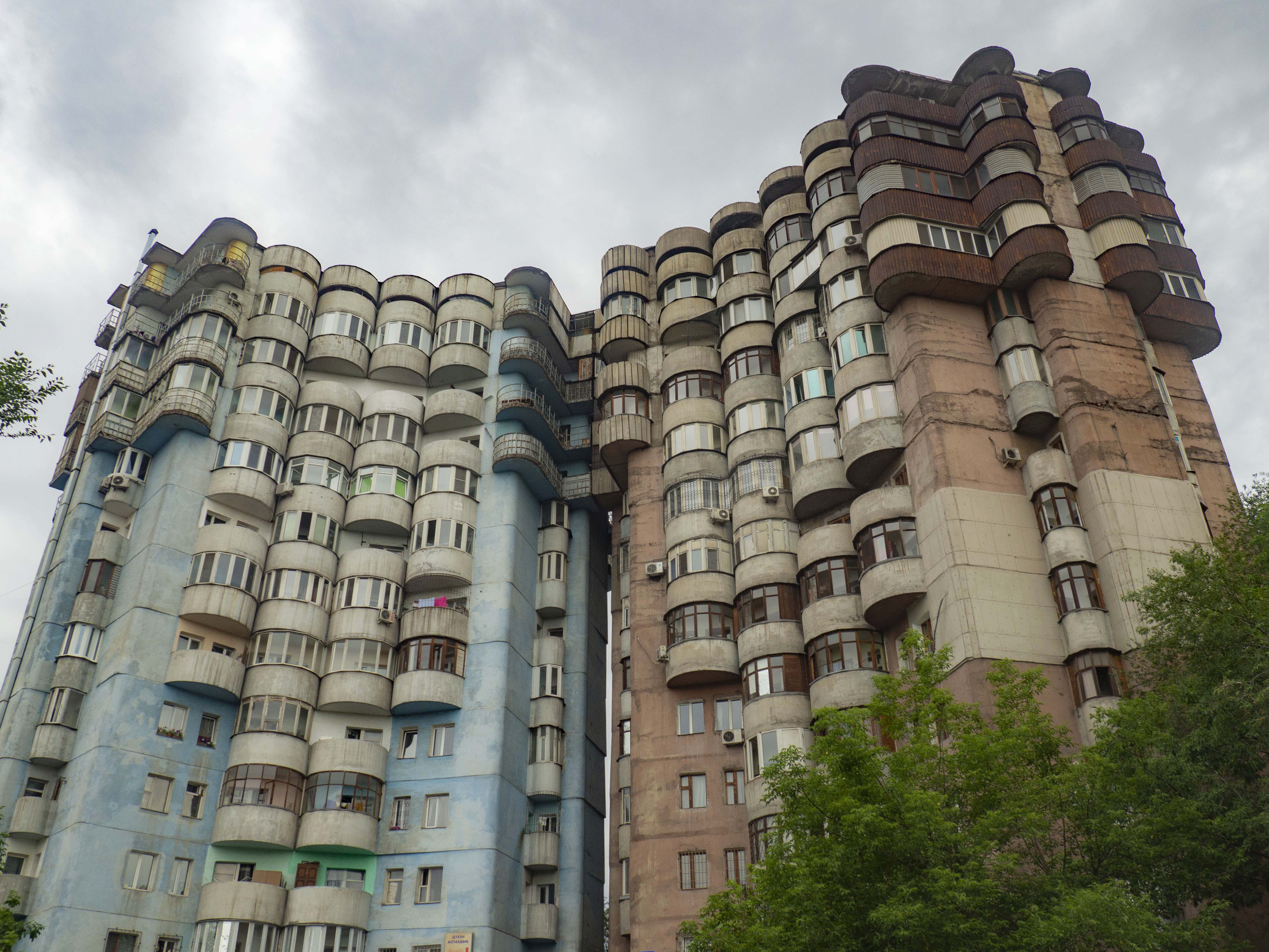 Almaty is also where one can find a full catalogue of other concrete oddities and dilapidated Soviet residential blocks, e.g. Symbat Centre, Aul Residential Complex and the apartment blocks behind the monument of poet, Zhamabyl Zhabayev in the city centre.