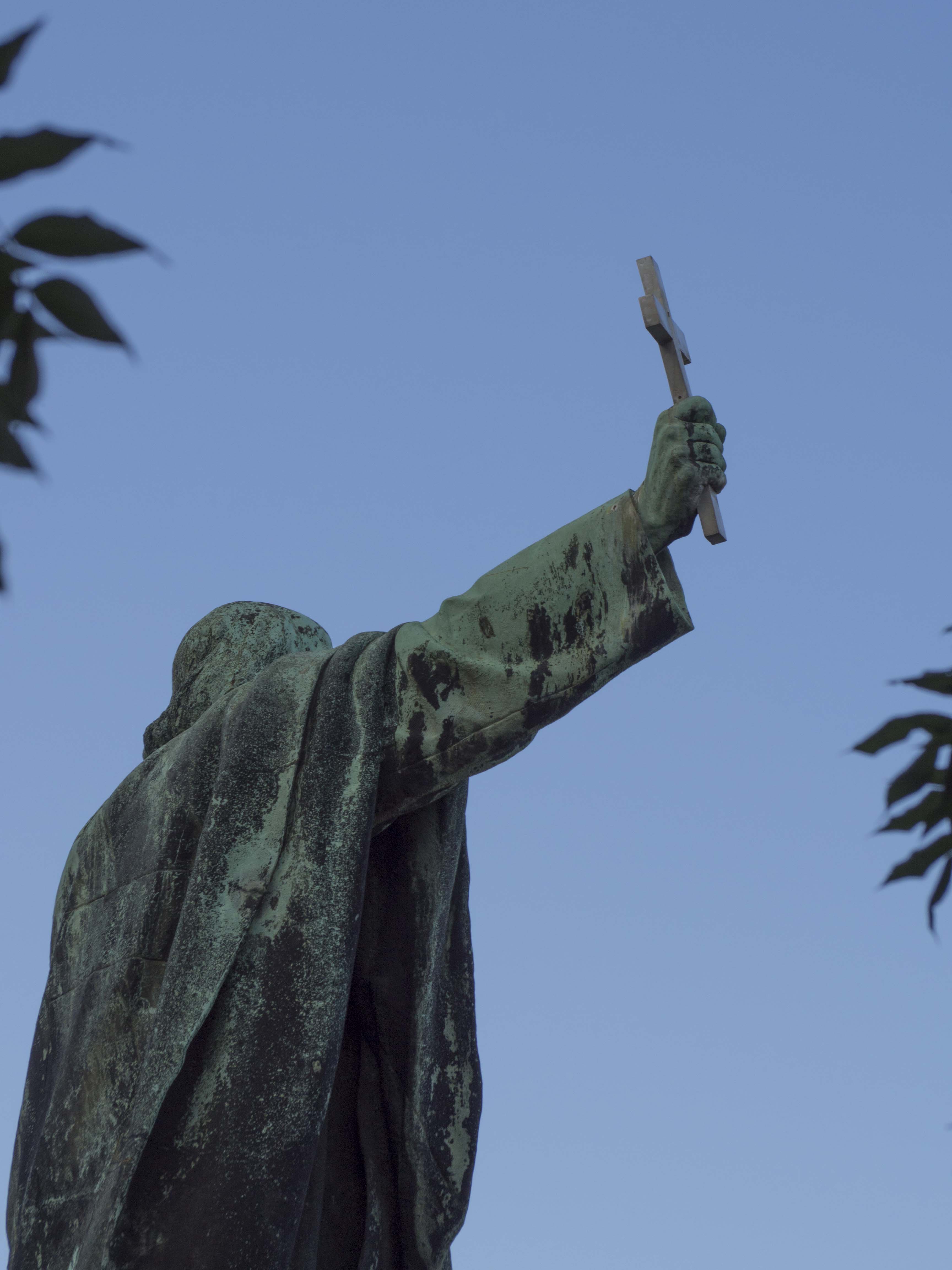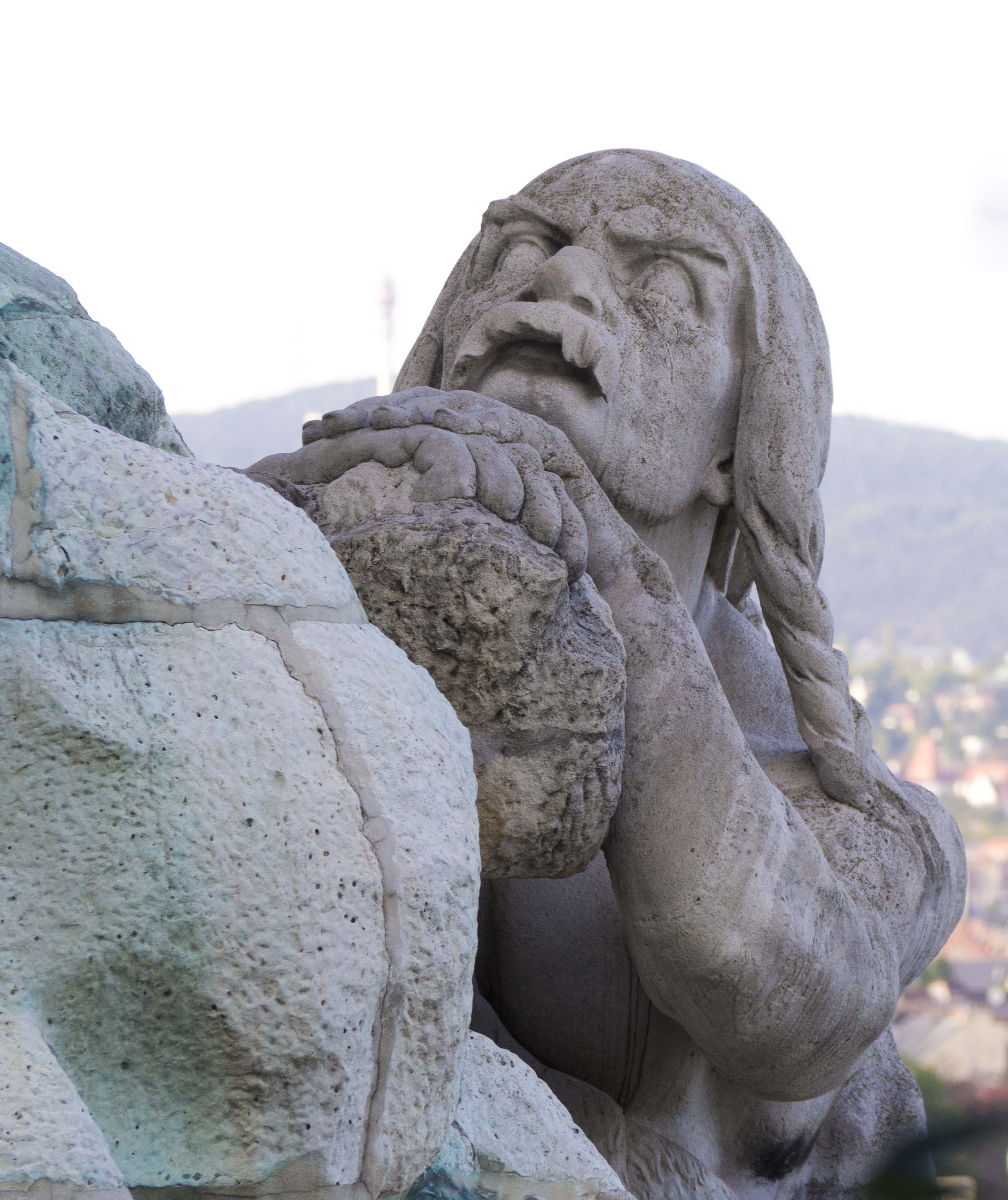 As with everywhere that religions exist, so has religious persecution in one form or another. Perched high on Gellért Hill (Gellért-hegy) beside Citadella overlooking the Danube is a statue of poor old St. Gerard (Gellért) who was thrown to his death from that very hill in 1046. The pagans in rebellion put him inside a barrel before throwing him from the top (or so the story goes). True enough, after I hiked up the many steps to the top, I could see at the base of the statue a gargoyle-like pig-tailed pagan gazing up, ready to pounce on Gellért who was defiantly thrusting a holy cross up towards the sky in martyrdom.