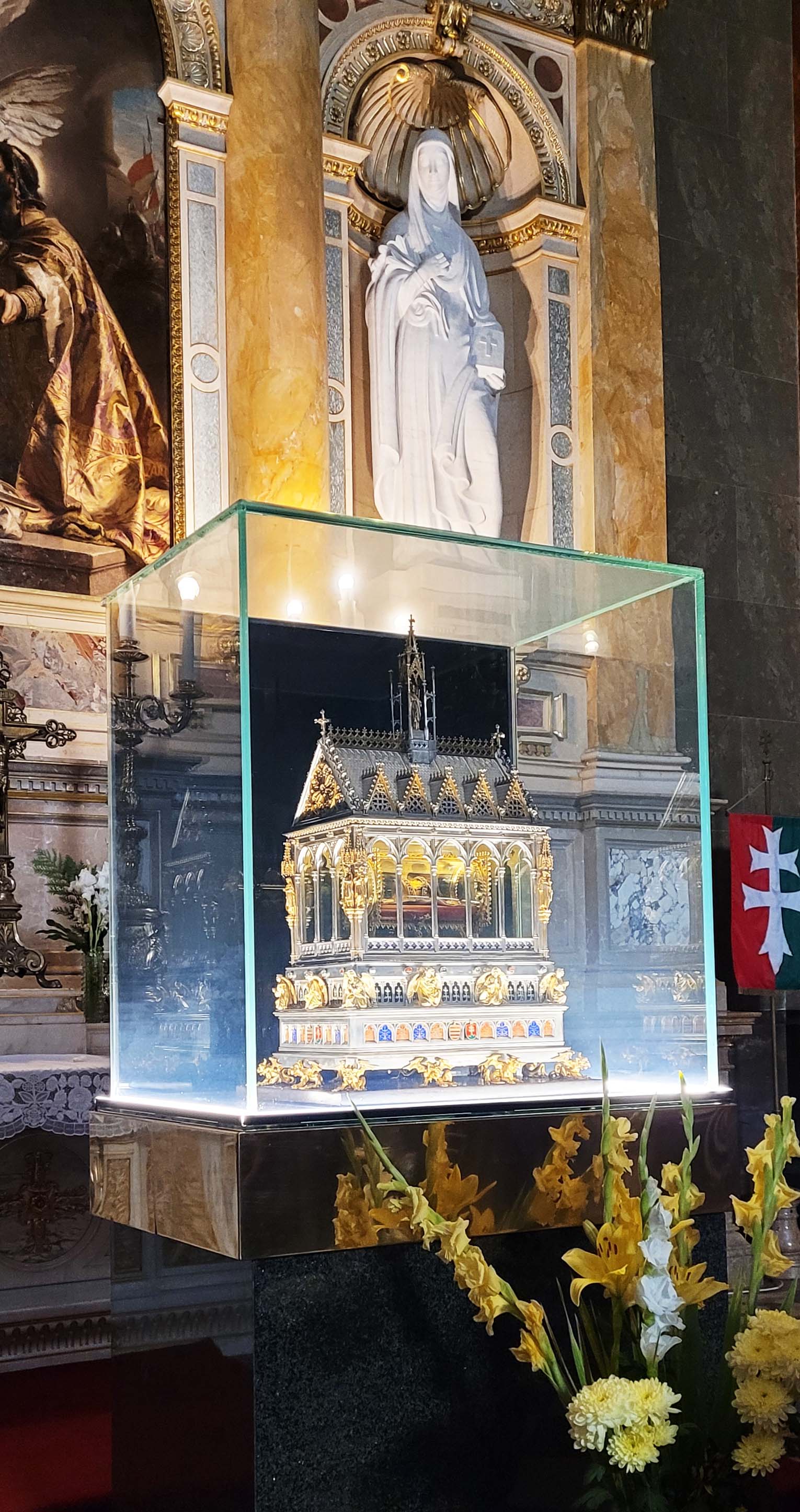 There is one very peculiar artefact within this building that I was oblivious to until my third visit – St. Stephen’s 1,000-year old preserved right hand in a golden casket on display within the main basilica. I had walked right past the little casket several times without noticing, as it requires a 200 forint coin to illuminate it sufficiently for the hand to become visible. What an oddity; to think they even take his venerated hand out on a walk during an annual procession every August. Apparently the hand was found to be in an undecayed state after St. Stephen’s body was exhumed, so they lobbed it off and it had being doing the rounds for centuries before finally returning it to Hungary after WWII.