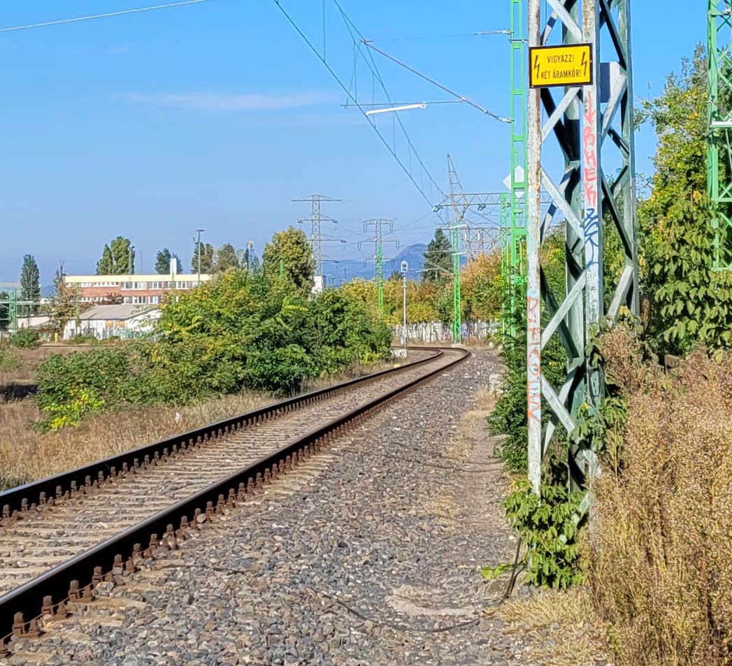 As I continued, the path underfoot gradually converged with the railway track until I found myself walking on the outer edges of the track itself as there was a hedgerow of jaggy thistle-like growth all the way. Suddenly I realised when I saw the yellow electrical hazard/warning signs (in Hungarian language of course), this cannot be right, but at this point it would have been as treacherous turn back as to continue. If a train came around the corner, even if I saw it in time, I would have no other choice but to leap into the jaggy hedgerow and hope for the best. My heart was pounding in my chest as I pressed on in trepidation, the whole time completely furious with Google for not mentioning that part of the pedestrian route was an active railway line!
